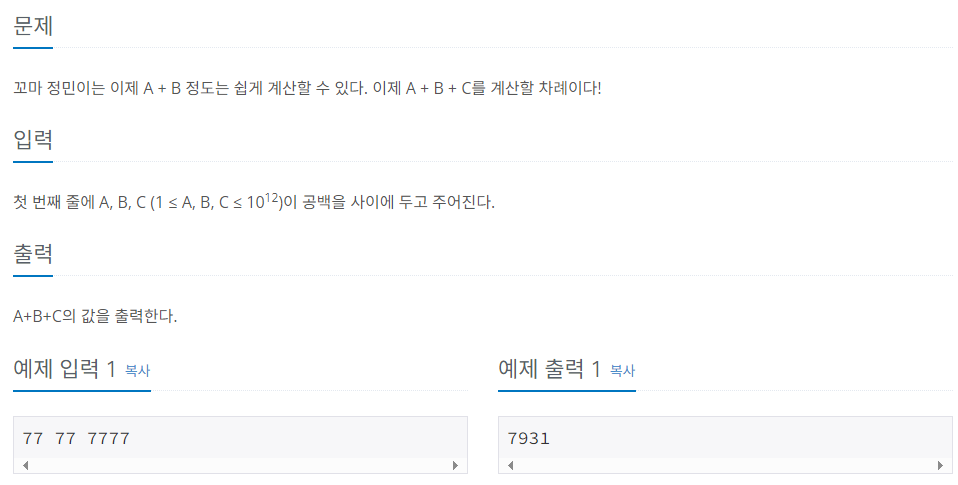 int로 사용하면 될 것 같지만 문제의 조건을 보면 c가 10^12까지 허용된다