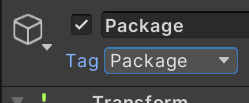 other의 tag가 Package와 동일( == )하다면 Debug.Log를 출력하게끔 설정했다