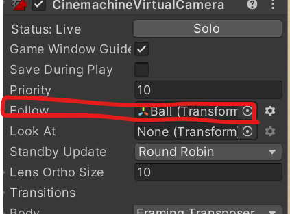 이후 Follow를 Ball로 바꿔주면 카메라가 우리가 만든 공을 졸졸 따라다니게 된다